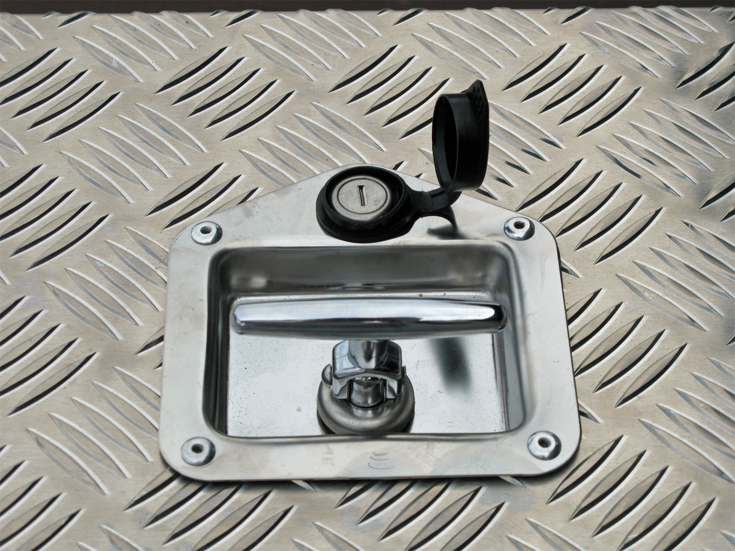 Mit soliden Haltebändern ausgestattet, Regen und Spritzwasser geschützt durch umliegende Dichtungen im Deckel und mit einem Schloss inkl. 2 Schlüsseln ausgestattet.  Neues Modell mit Edelstahverschluss