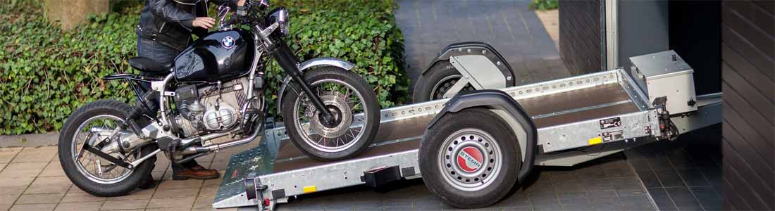 Absenkanhänger für bequemes Auf- und Abfahren. Dank der hydraulisch absenkbaren Ladefläche lassen sich alle Motorräder, Kleinfahrzeuge oder Baumaschinen ebenerdig bequem auffahren. Unsere absenkbaren Kofferanhänger finden Sie in der Rubrik Absenkkoffer.