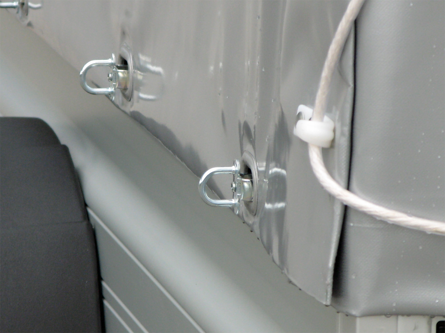 - versenkte Zurrbügel zur Ladungssicherung in den Seitenbordwänden (bis 2050 mm Kastenlänge 4 Stück, ab 2510 mm Kastenlänge 6 Stück)