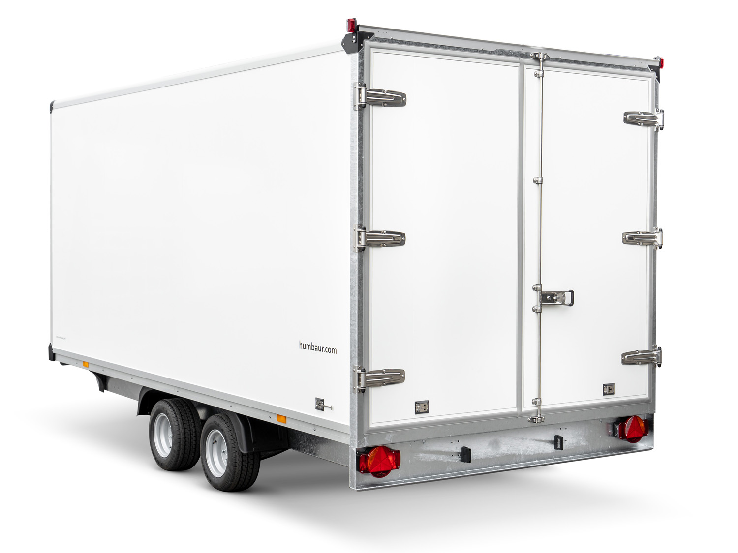 Ein Klassiker mit stabilem und haltbarem Sandwichkoffer. 18 mm starker Siebdruckboden und 30 mm dicke Paneele als Wände belegen die robuste Konstruktion. Die niedrige Ladehöhe und je nach Ausführung eine Nutzlast zwischen einer und zwei Tonnen machen den HK mit außenliegenden Rädern zu einer besonders flexiblen Lösung. Seine Metallteile sind entweder aus rostfreiem Aluminium oder aus feuerverzinktem Stahl gefertigt. Ein rutschhemmend beschichteter Boden und Dichtungen an den Türen zeigen, wie Sie dieser Anhänger im Alltag unterstützt - bis ins Detail durchdacht. Der Kofferanhänger verfügt außerdem über integrierte Bodenschienen mit verschiebbaren Zurrpunkten die eine flexible und individuelle Ladungssicherung ermöglichen. Eine moderne LED Innenbeleuchtung sorgt für ausreichende Beleuchtung beim Be- und Entladen.