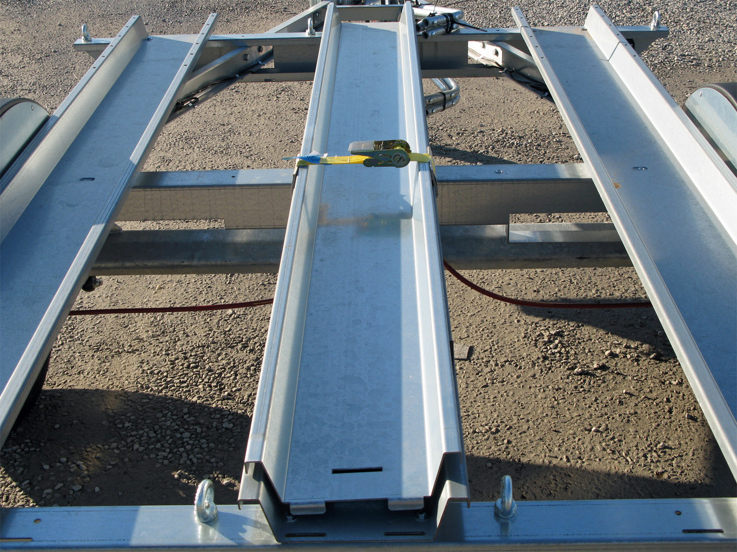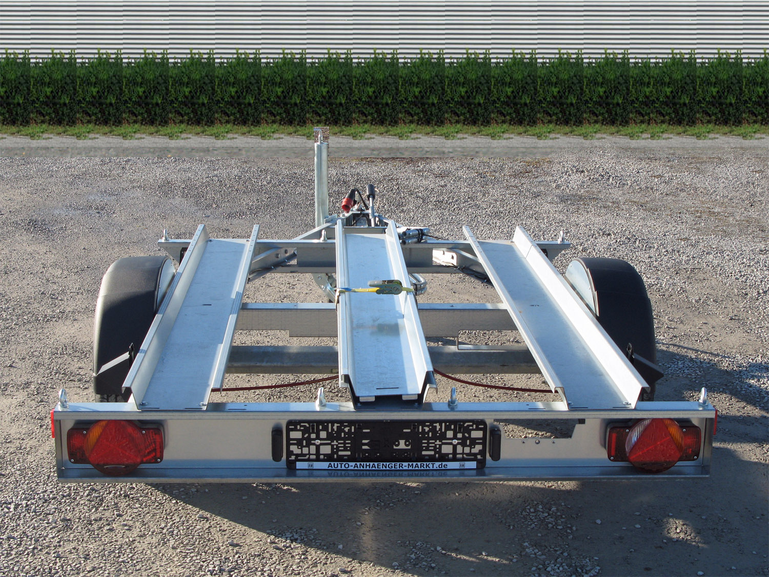 Der HM Motorradtransporter für drei Motorräder ist mit drei Standschienen ausgestattet. An 10 verzinkten Zurrösen können Sie Ihre Motorräder sicher befestigen. Eine Auffahrschiene zur Beladung ist in einem eigenen Bohlenschacht unter dem Anhänger untergebracht, die Montage ist mit wenigen Handgriffen möglich.
