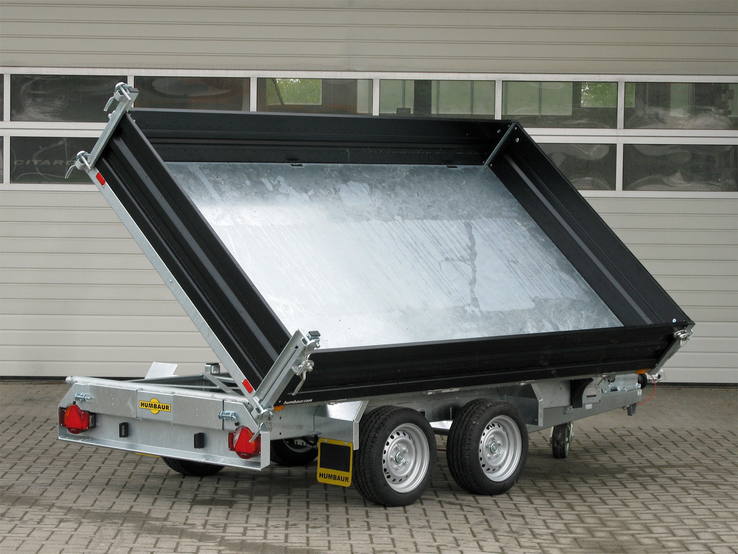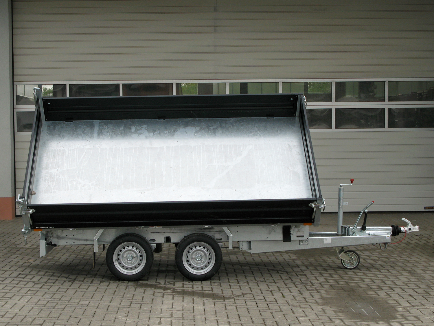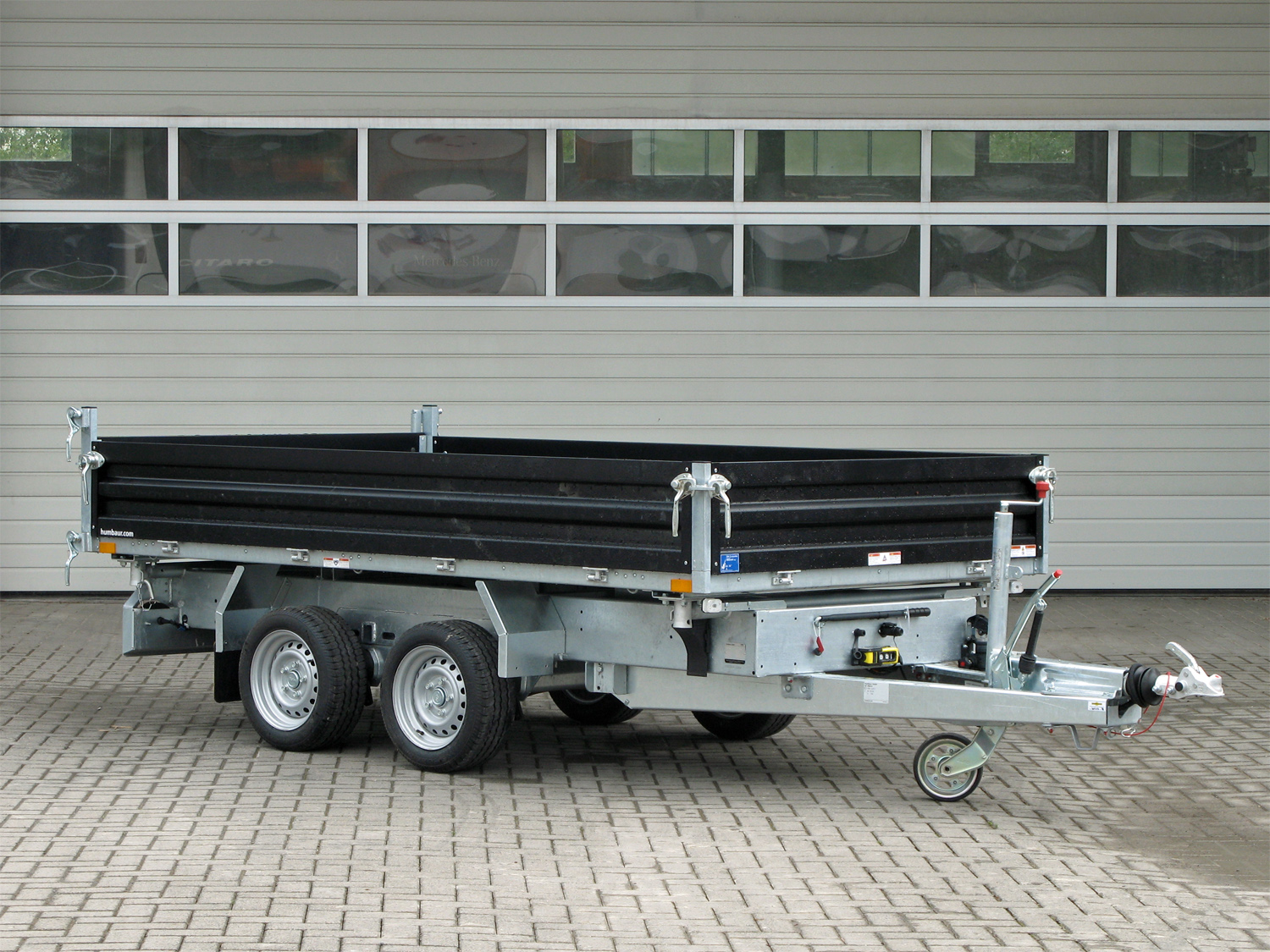 Die Parabelfederung beim Dreiseitenkipper HTK sorgt für die Extraportion Fahrkomfort, Sicherheit und Robustheit. Durch eine gleichmäßige Verteilung der Last werden Straßenunebenheiten auch in voll beladenem Zustand optimal ausgeglichen und eine perfekte und stabile Straßenlage ist gewährleistet. Die Robustheit der Parabelfederung begünstigt eine extra lange Lebensdauer. Mit der serienmäßig im Anhänger verbauten Elektro- und Handpumpe wird auch das Abkippen Ihres Ladeguts nicht mehr zur Herausforderung, sondern zum Kinderspiel.