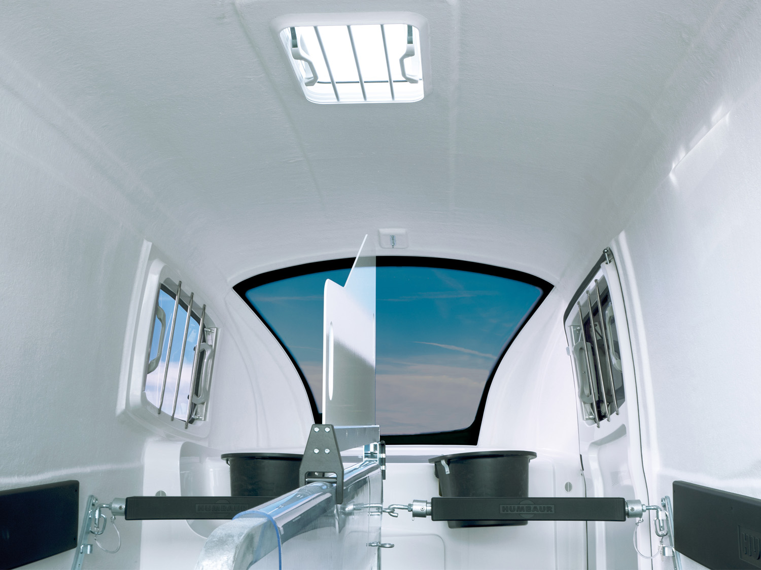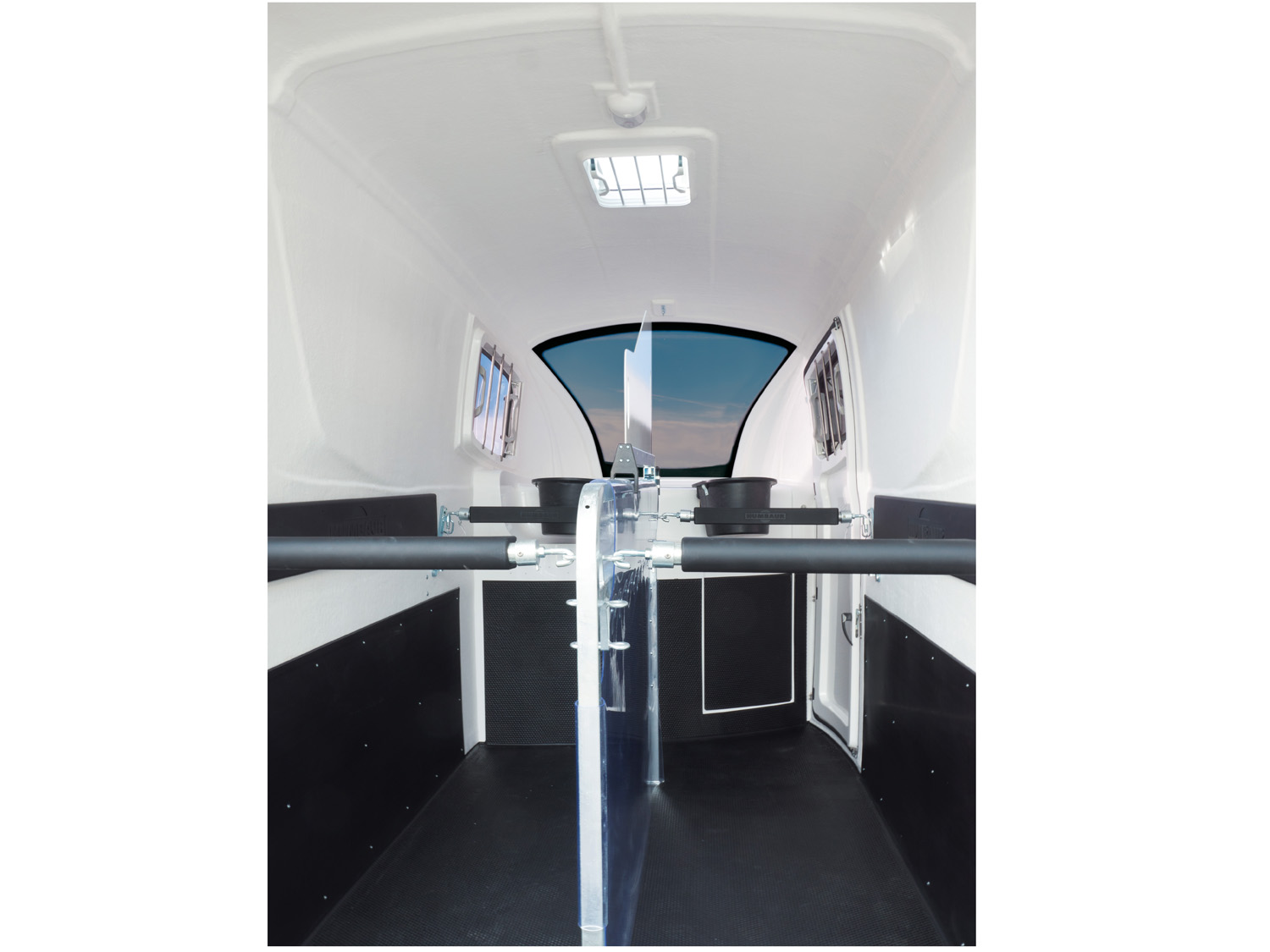 - Abschließbare Sattelkammer mit Beleuchtung, ausziehbarem Sattelhalter, Trensenhalter, Innenspiegel, Staunetz, Innenbeleuchtung, Schaufel und Besen