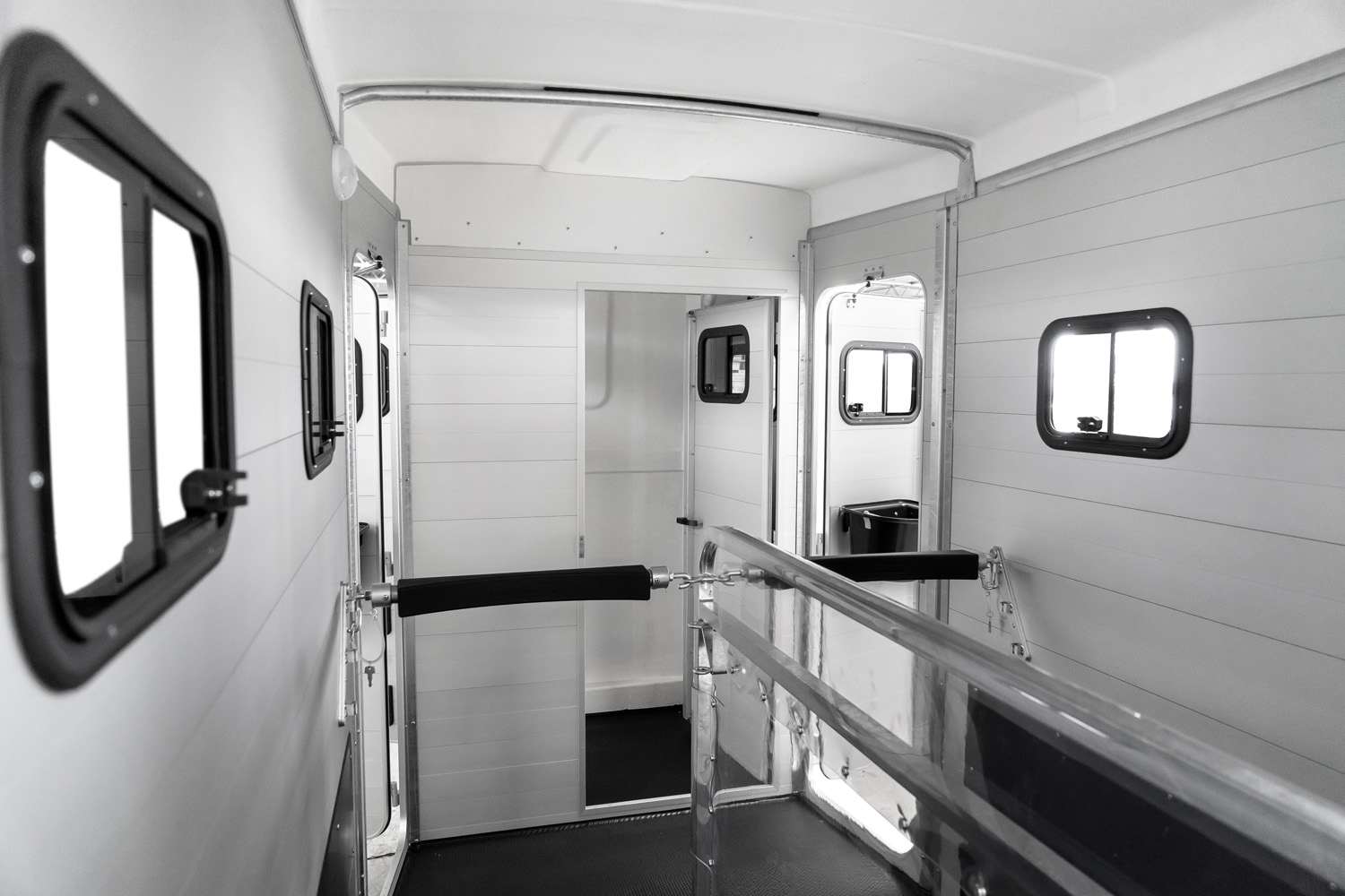 - Mannshohe Einstiegstüre rechts zum Pferderaum mit Schiebefenster und 3-Punkt-Verriegelung