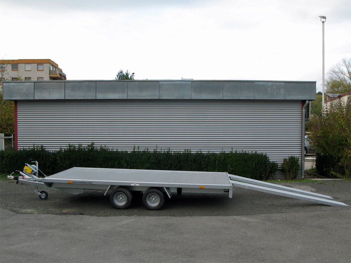 - 2 tauchbad feuerverzinkte Auffahrbohlen aus Gitterrost unter der Ladefläche eingeschoben