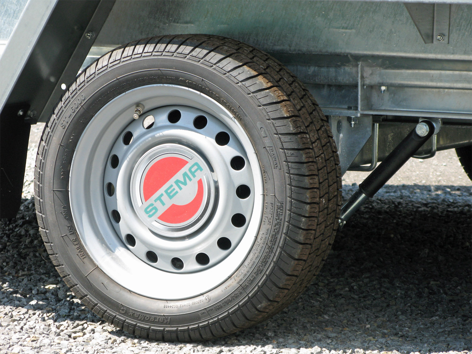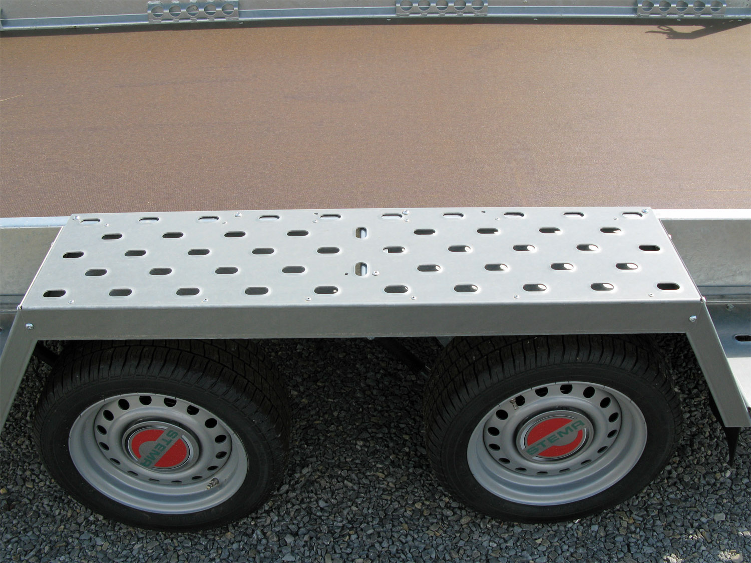 - geschweißtes und im Tauchbad feuerverzinktes Fahrgestell aus massiven Stahlblech