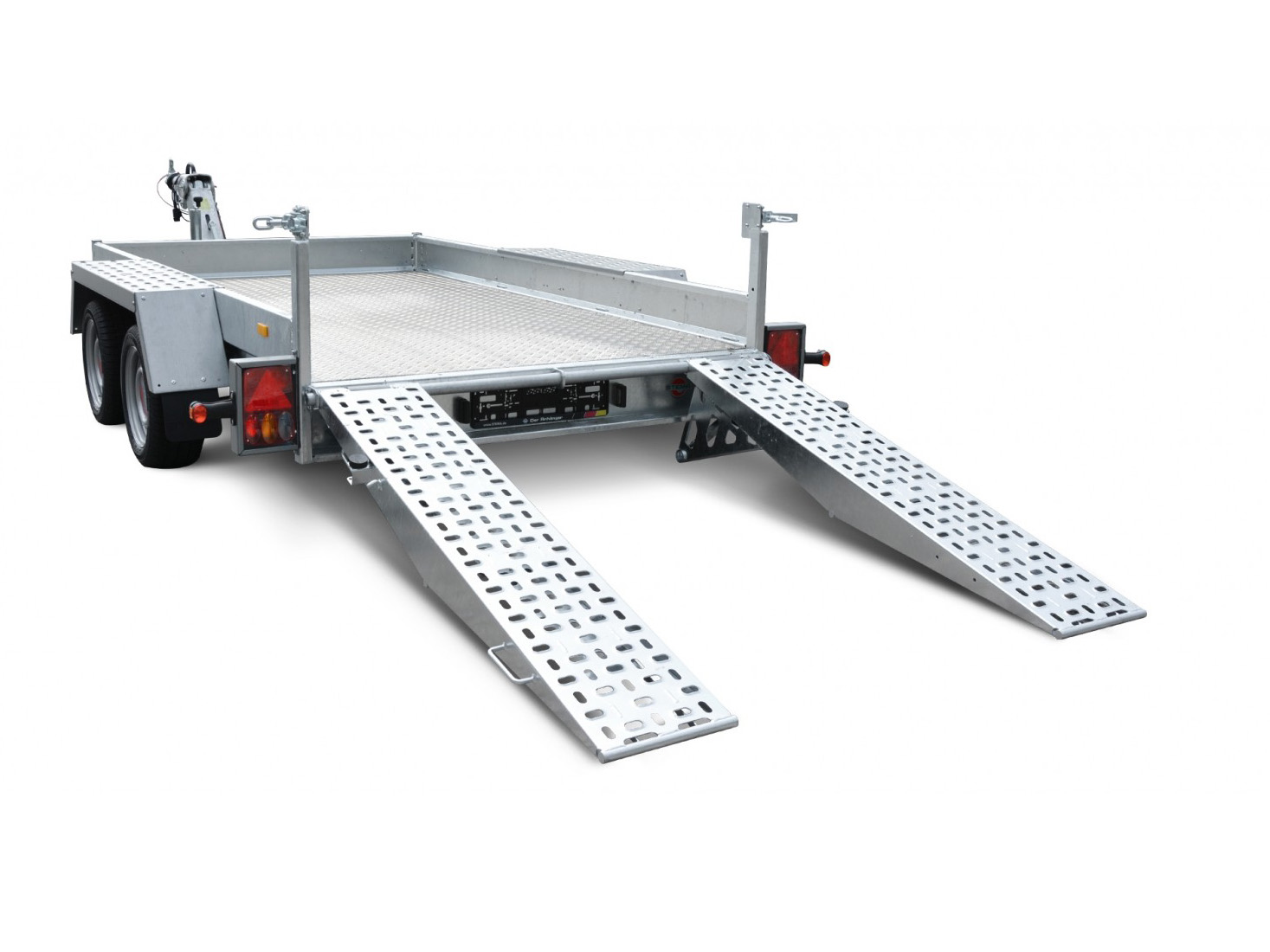 Für jeden Einsatz. Der universell einsetzbare STEMA-Baumaschinentransporter ist der ideale Begleiter für den gewerblichen Einsatz. Baumaschinen und andere Arbeitsgeräte lassen sich durch den extrem niedrigen Auffahrwinkel (18°) über die stabilen Auffahrrampen (1,70 m lang) mühelos verladen. Die Ladehöhe beträgt ca. 46 cm.
