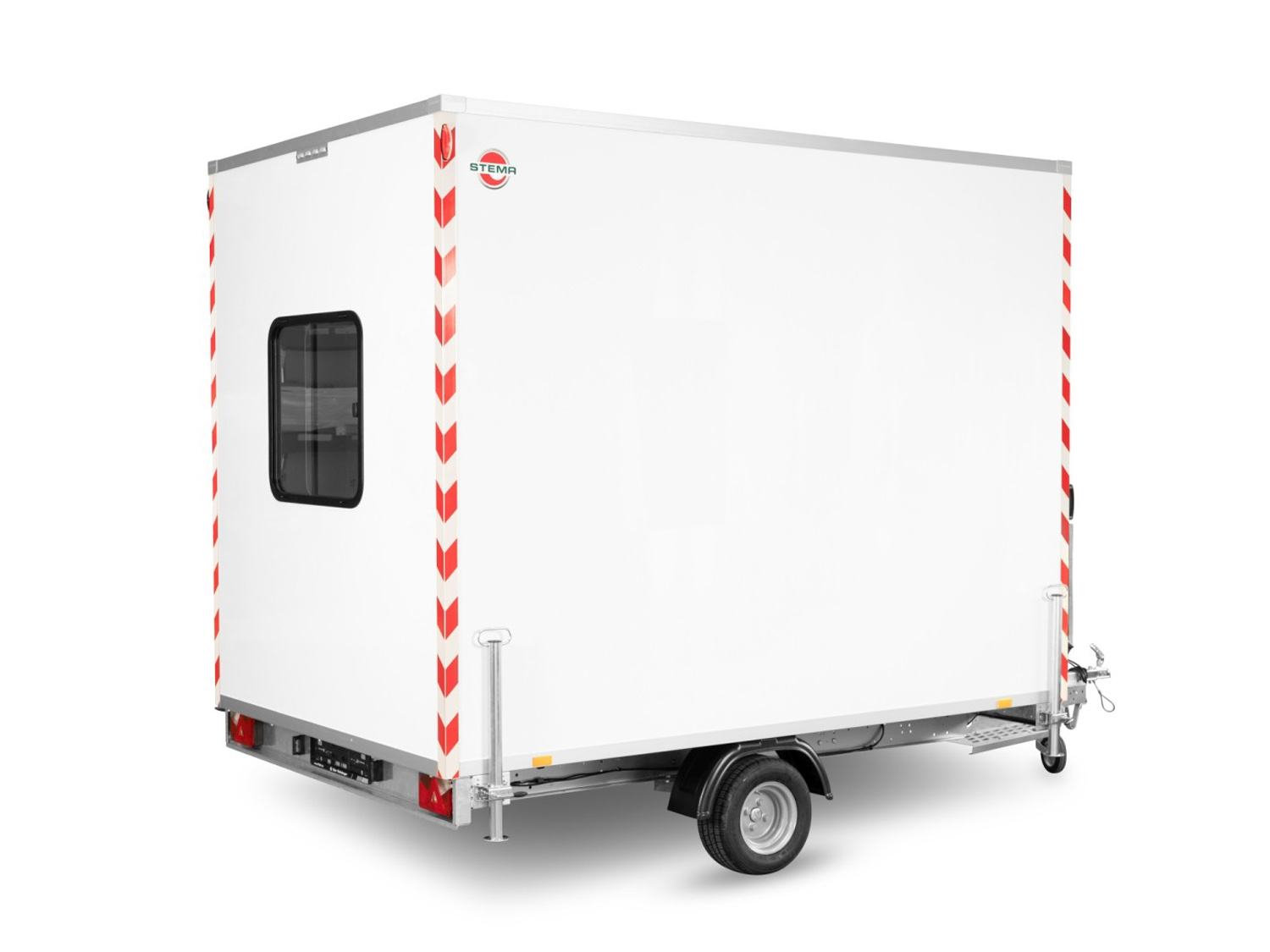 Entdecken Sie den STEMA Bauwagen – Ihr mobiler Aufenthaltsraum für effizientes Teamwork auf der Baustelle! Mit großzügigen Maßen von 307 x 201 x 230 cm bietet dieser Anhänger ausreichend Platz für Materialien und entspannte Pausen. Die Tür in der Vorderwand mit Trittstufe auf der Deichsel ermöglicht einen einfachen Zugang, während das Fenster in der Rückwand für Belüftung sorgt. Dank des innovativen Verzurrsystems können Sie den Bauwagen individuell anpassen und mit drei verschiedenen Ausstattungspaketen erweitern. Ob Besprechungsraum, Pausenzone oder Aufenthaltsraum – der STEMA Bauwagen bietet Ihnen die Flexibilität, Ihren Baustellenalltag effizient zu gestalten. Investieren Sie in Funktionalität und Teamarbeit – investieren Sie in den STEMA Bauwagen! Abb. Enthalten kostenpflichtiges Zubehör