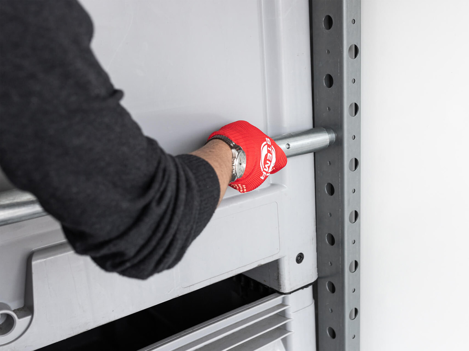 Schon in der Standardausführung ist von jeder Stelle aus eine diagonale Abspannung vom Boden bis zur Decke möglich. Auf Wunsch gibt es weitere Verzurrlösungen, die mit flexibel arretierbaren Stangen arbeiten und allerhöchste Ansprüche an die Ladungssicherung erfüllen.
