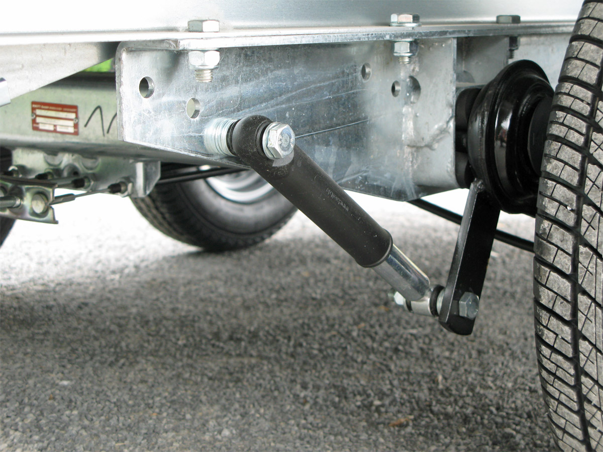 Alle gebremsten SySTEMA-Anhänger ab 850 kg zul. Gesamtgewicht sind serienmäßig mit Stoßdämpfern ausgerüstet. Diese Anhänger können direkt bei der Zulassungsstelle für 100 km/h zugelassen werden.