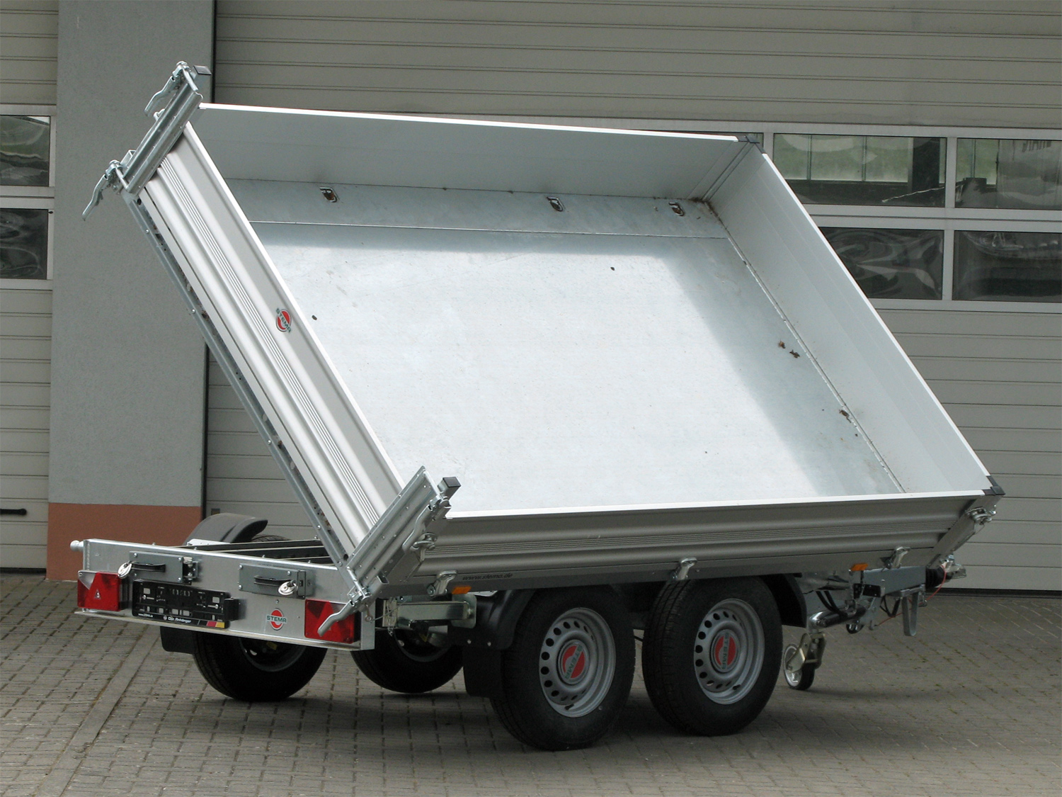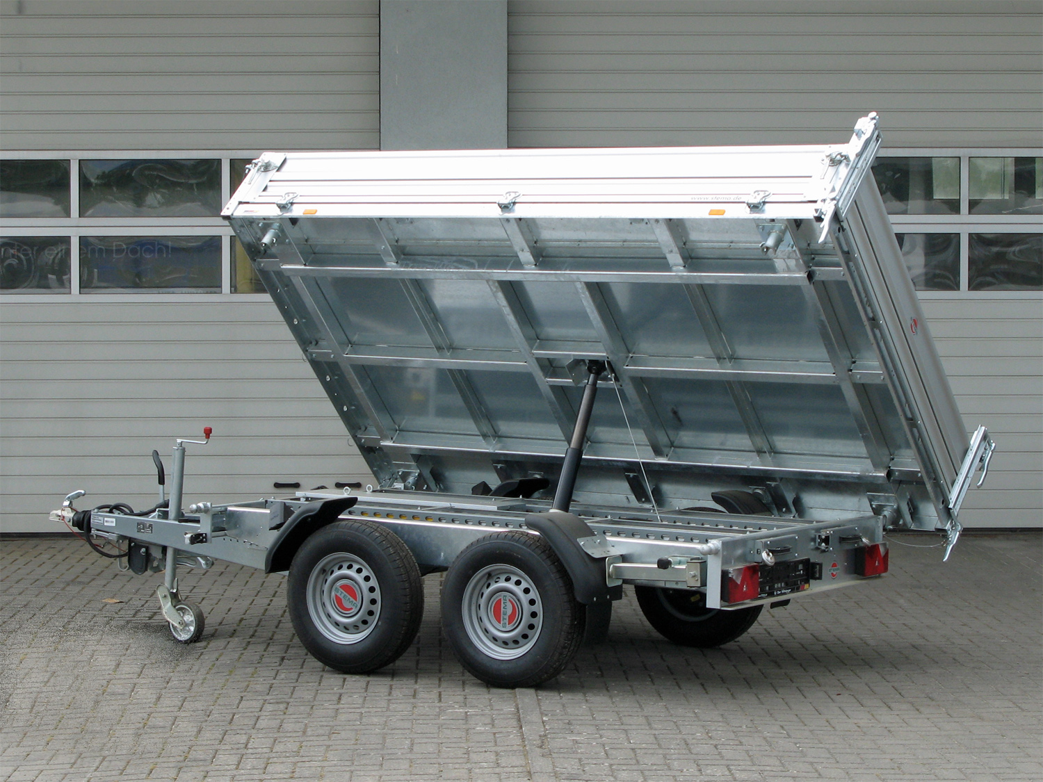 - Grundrahmen (Fahrgestell) und Kippbrücke aus massiven Stahlprofilen geschweißt und im Tauchbad feuerverzinkt