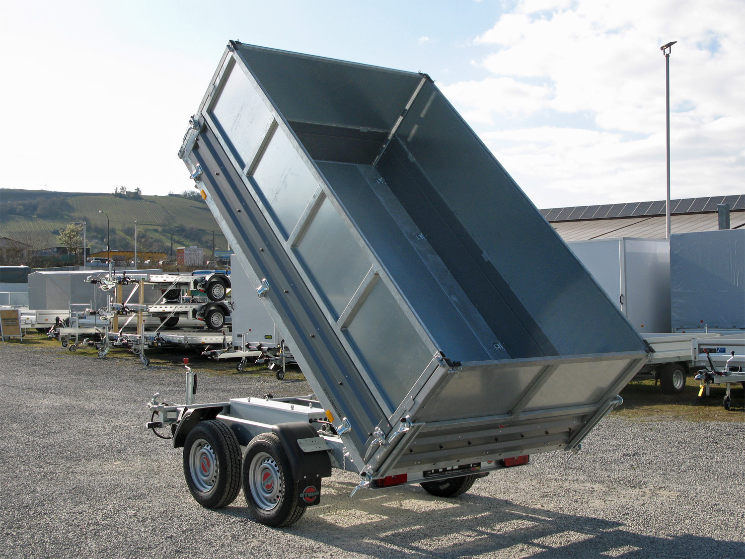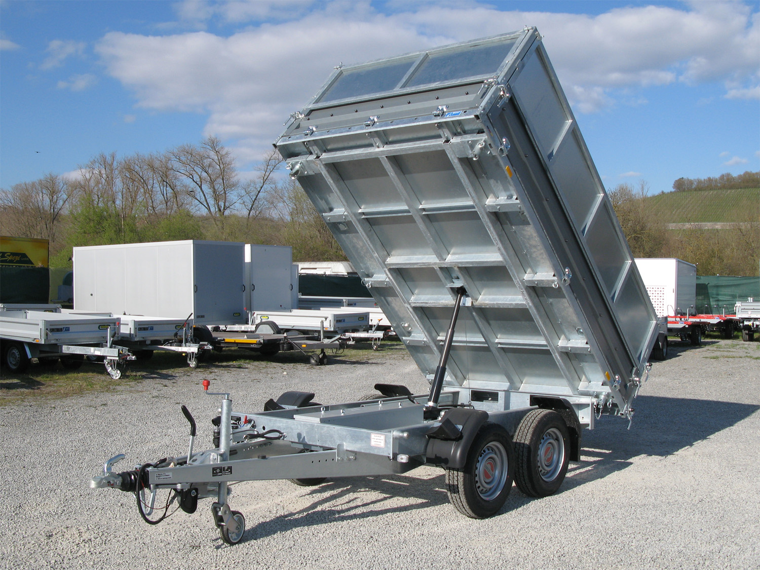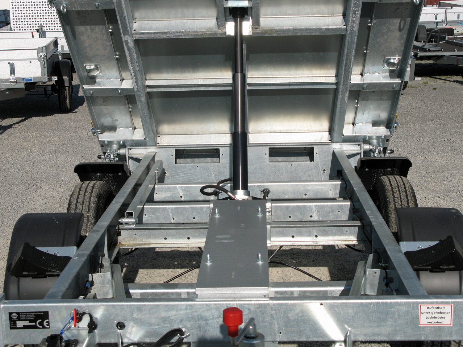 - Grundrahmen (Fahrgestell) und Kippbrücke aus massiven Stahlprofilen geschweißt und im Tauchbad feuerverzinkt