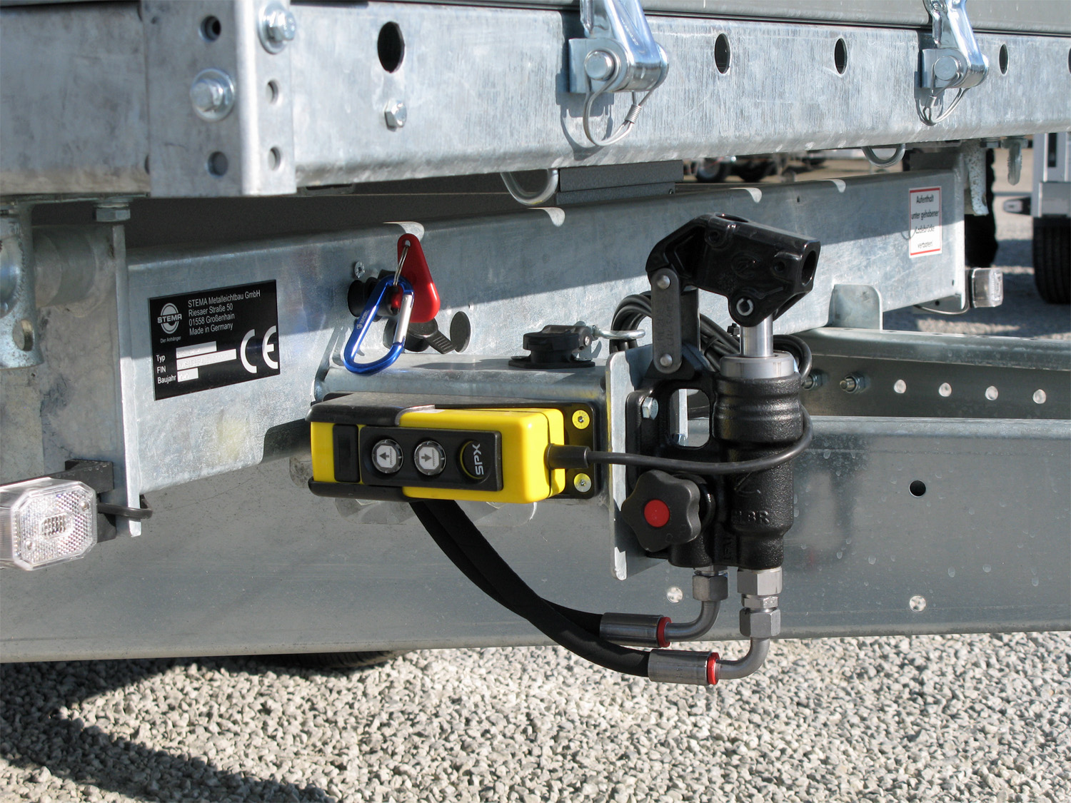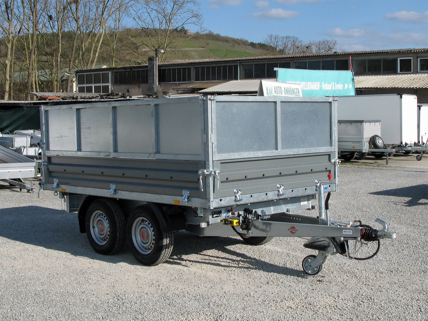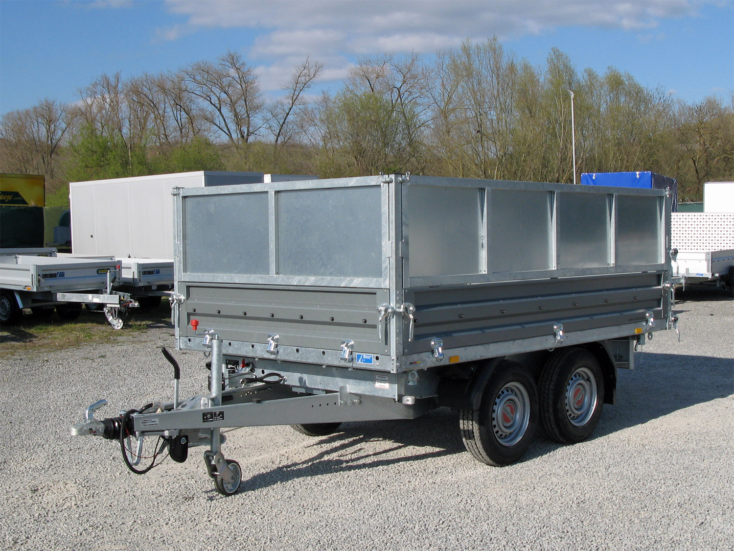- Grundrahmen (Fahrgestell) und Kippbrücke aus massiven Stahlprofilen geschweißt und im Tauchbad feuerverzinkt
