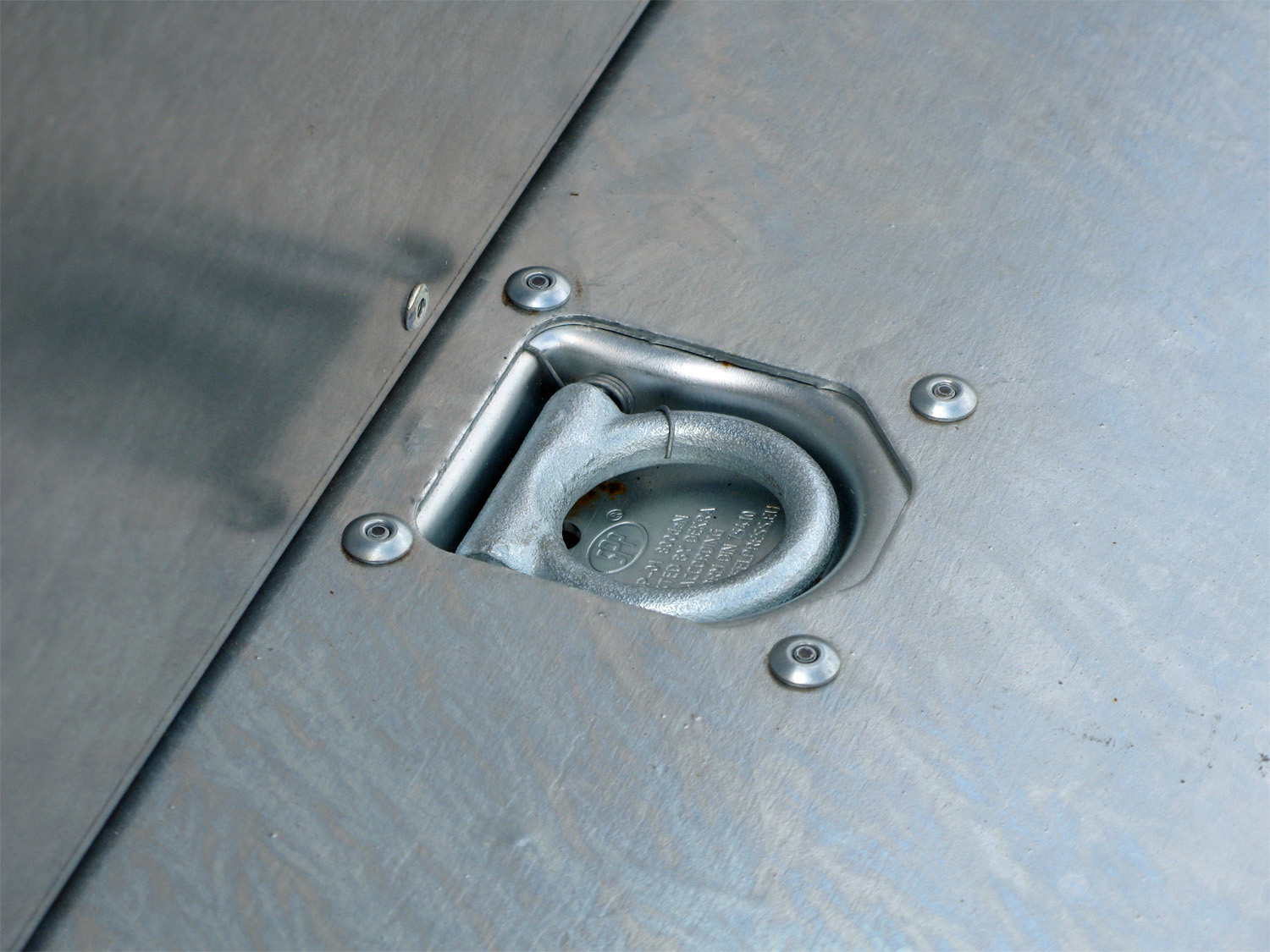 - bis zu 8 versenkte Schwerlast-Zurringe, auf dem Brückenboden montiert (Zugkraft bis 800 daN (kg) pro Zurring, DEKRA geprüft)