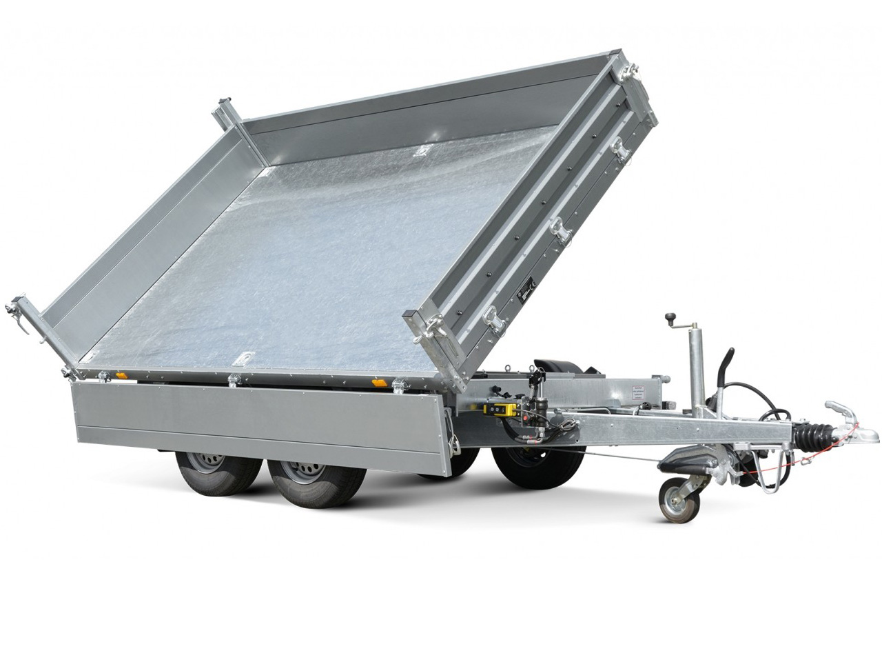 - Grundrahmen (Fahrgestell) und Kippbrücke aus massiven Stahlprofilen geschweißt und im Tauchbad feuerverzinkt
