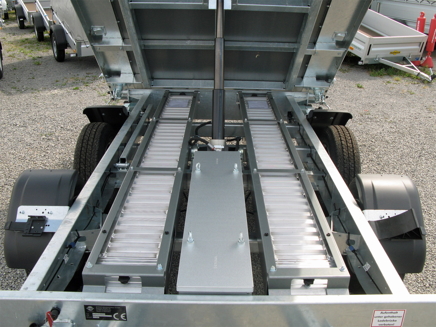 - Grundrahmen (Fahrgestell) und Kippbrücke aus massiven Stahlprofilen geschweißt und im - Tauchbad feuerverzinkt