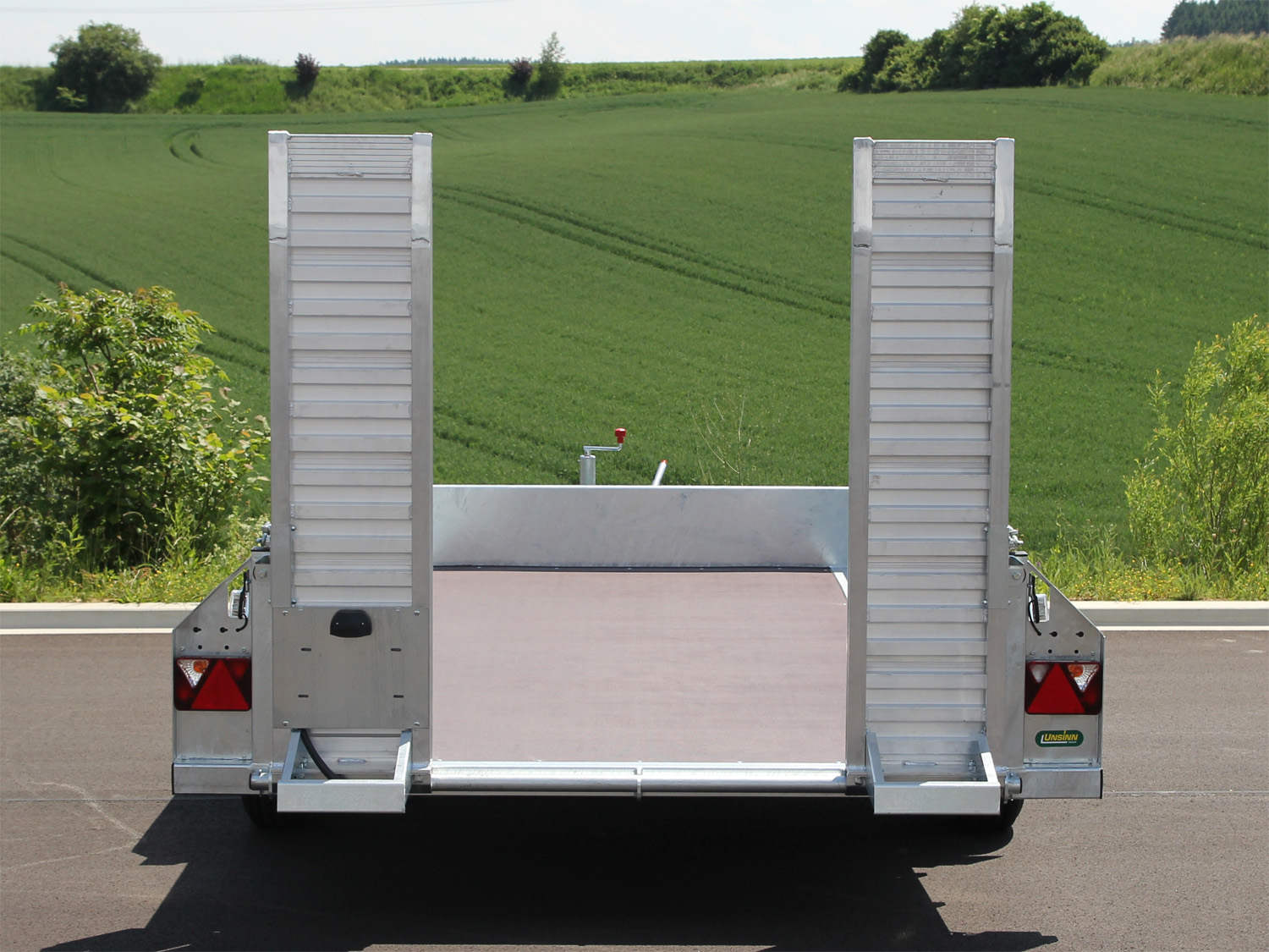 - 2 Stück abklappbare und seitenverstellbare Alu Auffahrrampen mit integrierter Bodenabstützung, mit einer Tragkraft von 3500 k
