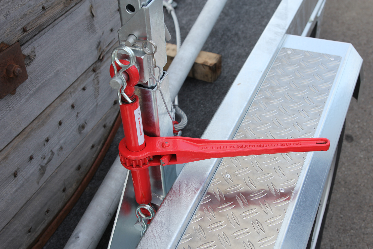 - 2 Stück abklappbare und seitenverstellbare Alu Auffahrrampen mit integrierter Bodenabstützung, mit einer Tragkraft von 3500 k