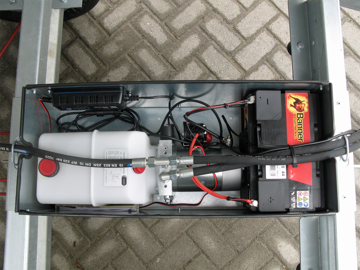 - inkl. Hand- und Elektropumpe mit Batterie und Ladegerät für hydraulischer Kippeinrichtung