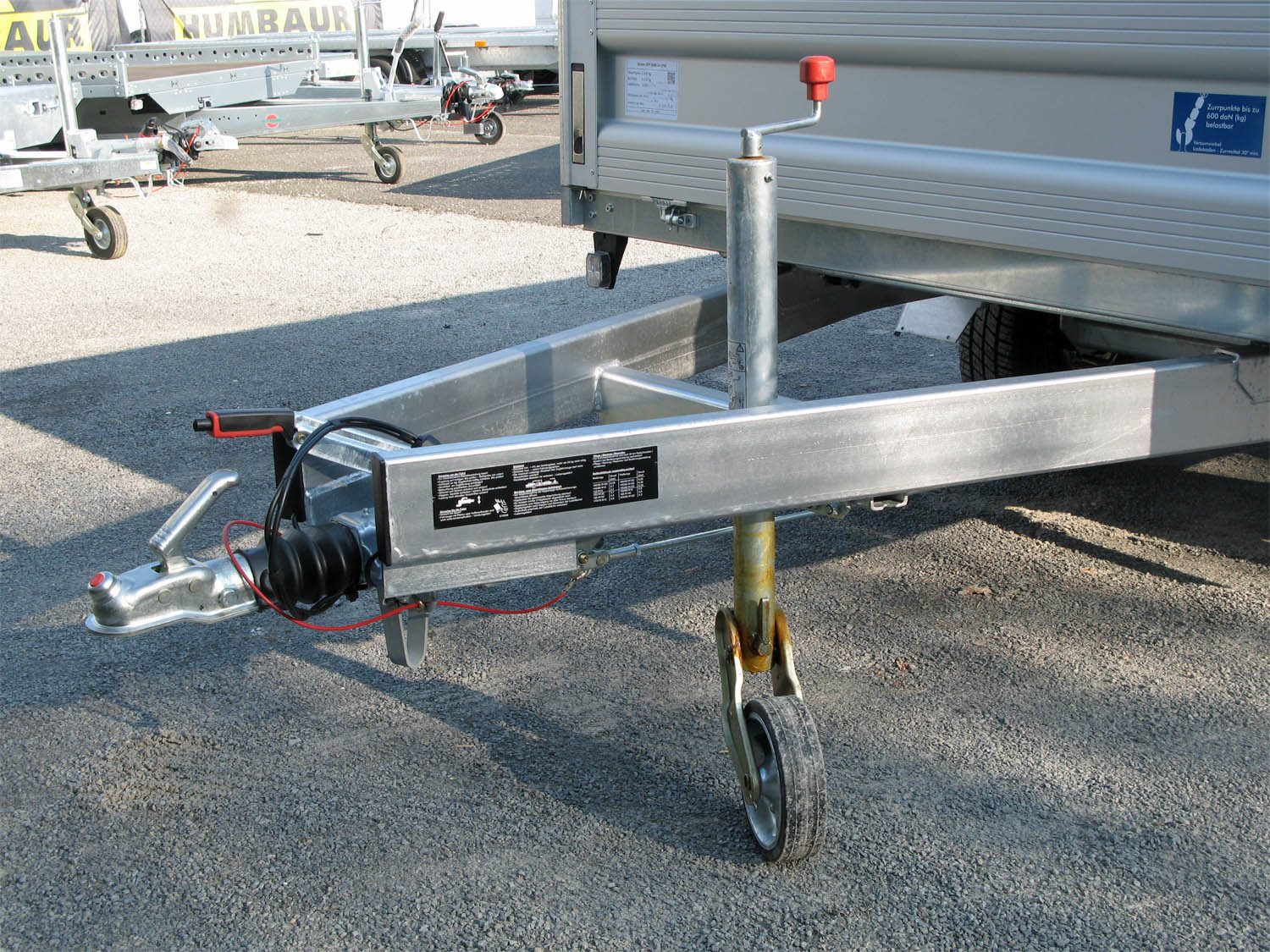- Verstärktes, automatisches Stützrad, für sicheres Abstellen des beladenen Anhängers, Tragkraft 500kg