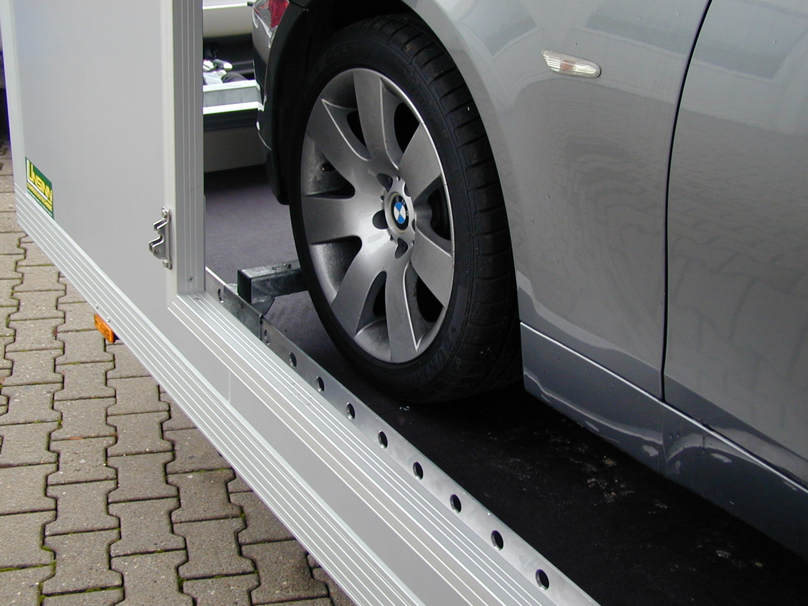 - Integriertes Zurrsystem vorne und hinten, für die Aufnahme von Radstoppern und Rad-Sicherungsgurten