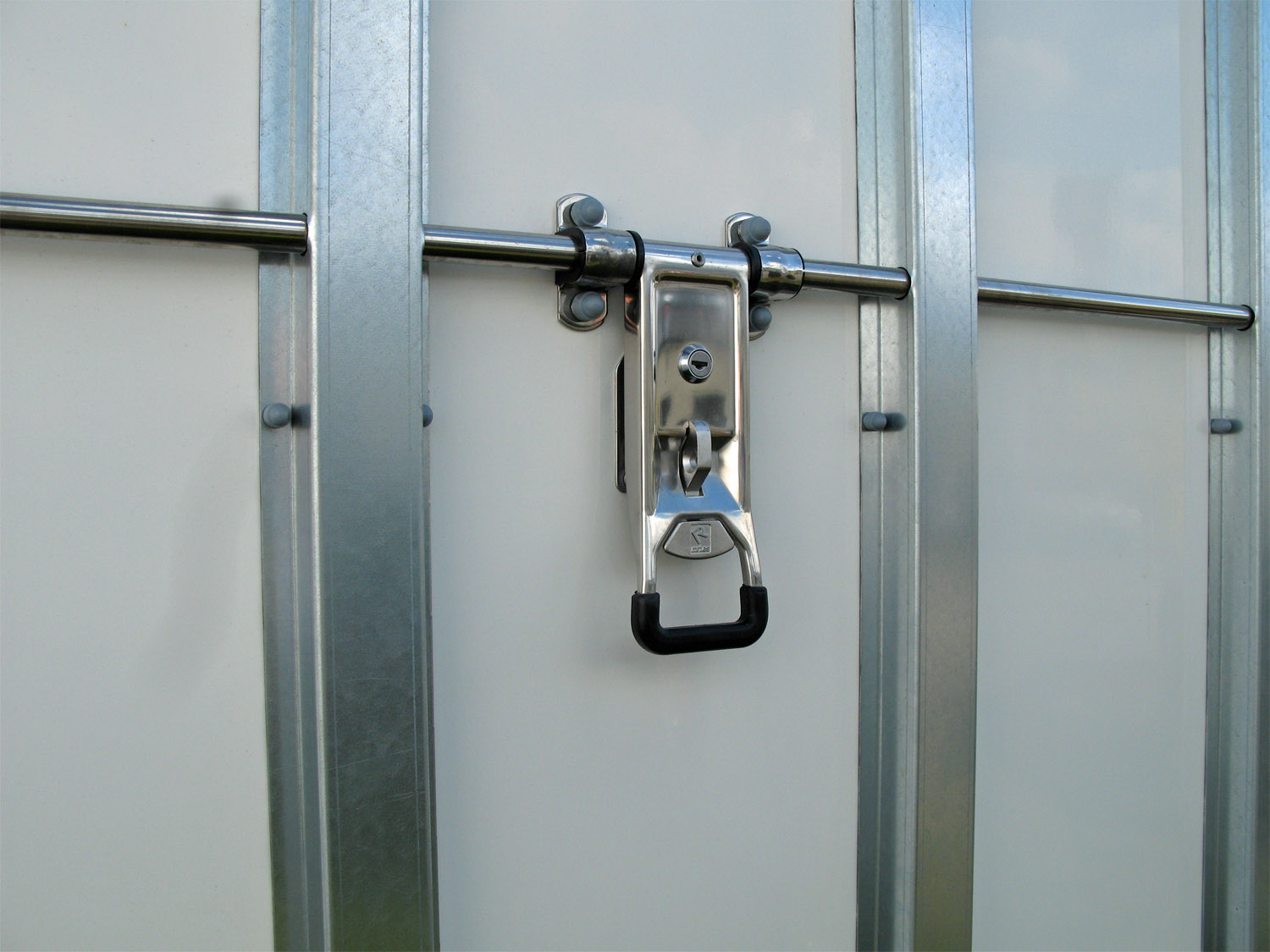 - Auffahrklappe mit Gasfederhubhilfe mit querliegendem Drehstangenverschluss und rutschhemmenden Kunststoffbodenbelag