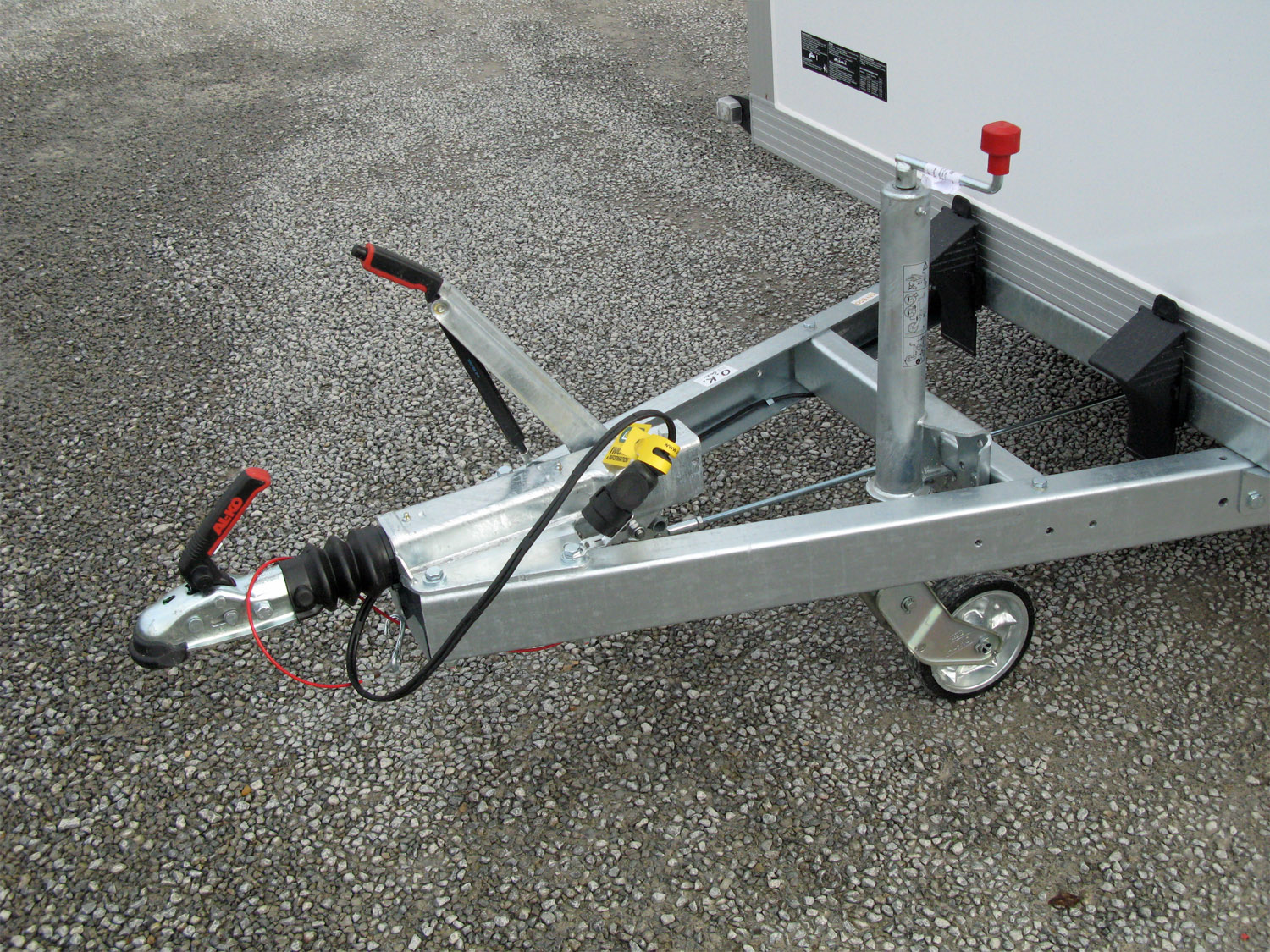 - Verstärktes automatisches Stützrad, für sicheres Abstellen des beladenen Anhängers, Tragkraft 500 kg bei gebremster Ausführung