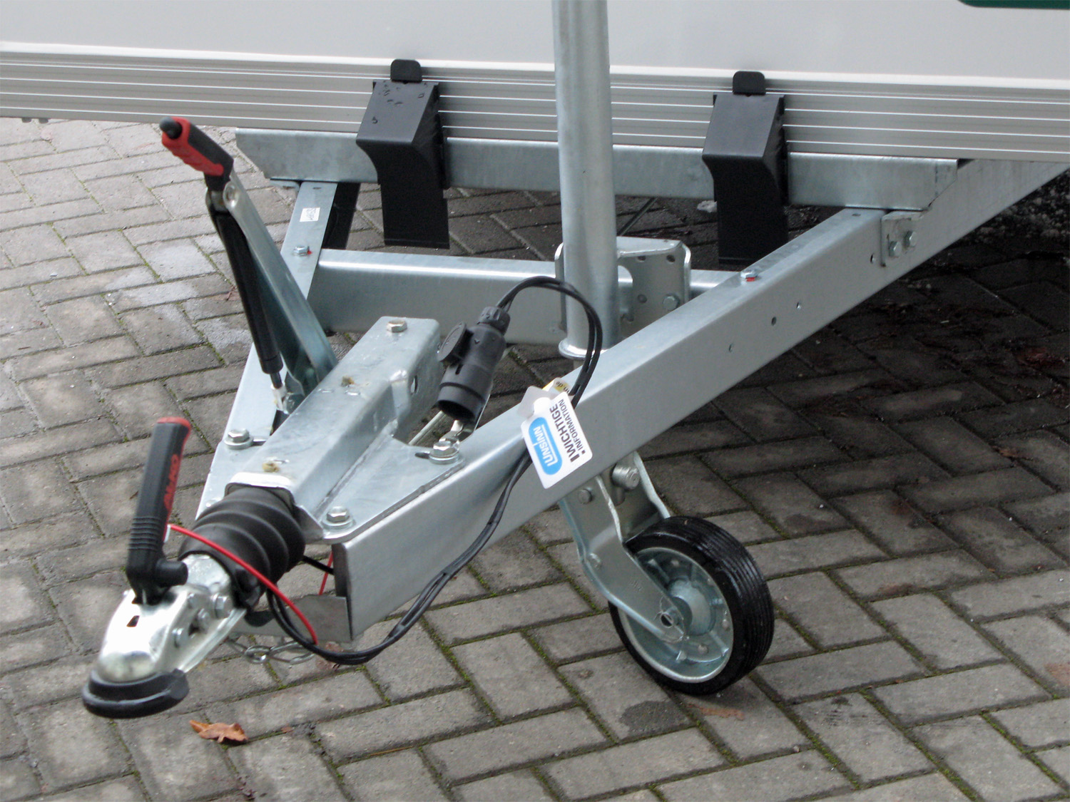 - Verstärktes automatisches Stützrad, für sicheres Abstellen des beladenen Anhängers, Tragkraft 500 kg bei gebremster Ausführung