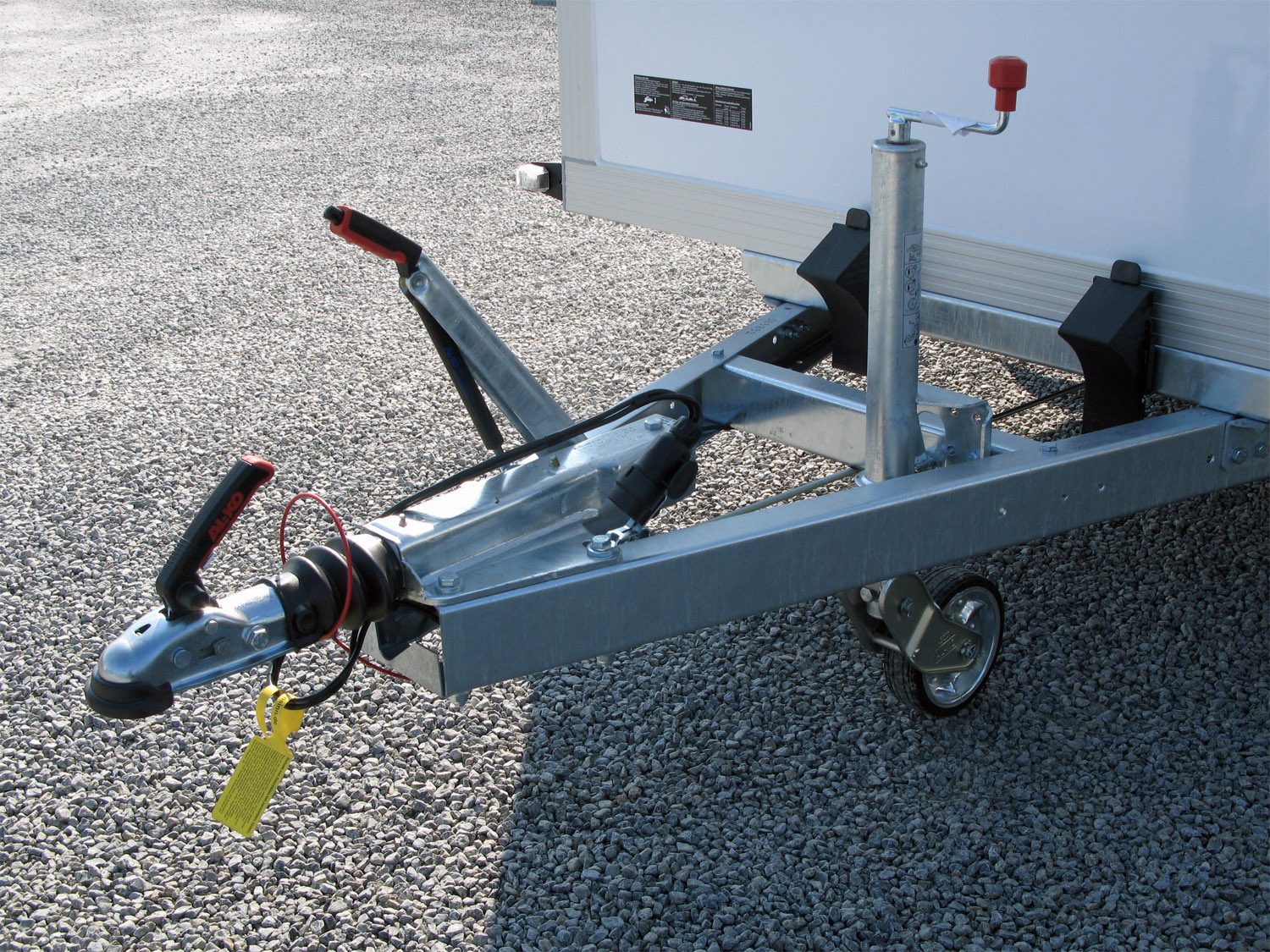 - Verstärktes automatisches Stützrad, für sicheres Abstellen des beladenen Anhängers, Tragkraft 500 kg bei gebremster Ausführung