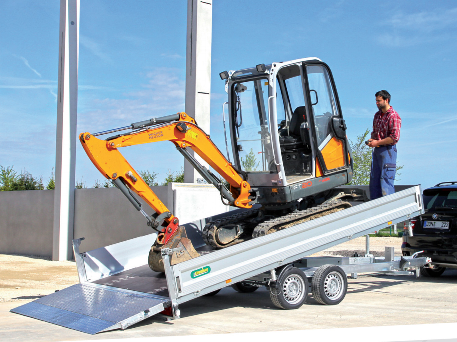 Aus zwei mach eins! Der neue DUO ist ein Pritschenhochlader mit nach hinten kippbarer Ladefläche und ein Seitenkipper zugleich. Das macht ihn zu einem echten Alleskönner auf der Baustelle. Ob ein Minibagger oder Schüttgut, mit diesem Anhänger bleiben Sie flexibel bei jeder Ladung. Die stabile Auffahrrampe für schwere Baugeräte sowie die kraftvolle Elektro-Hydraulik mit Funkfernbedienung, für ein komfortables Bedienen, bieten eine durchdachte Lösung für den Einsatz im anspruchsvollen Außenbereich.