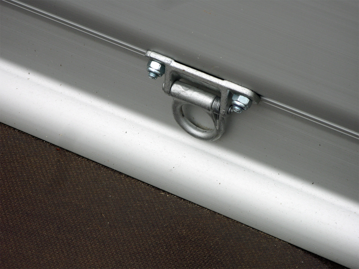 - Aluminium-Hohlprofil, eloxiert, hinten abklappbar, mit versenkten Verschlüssen