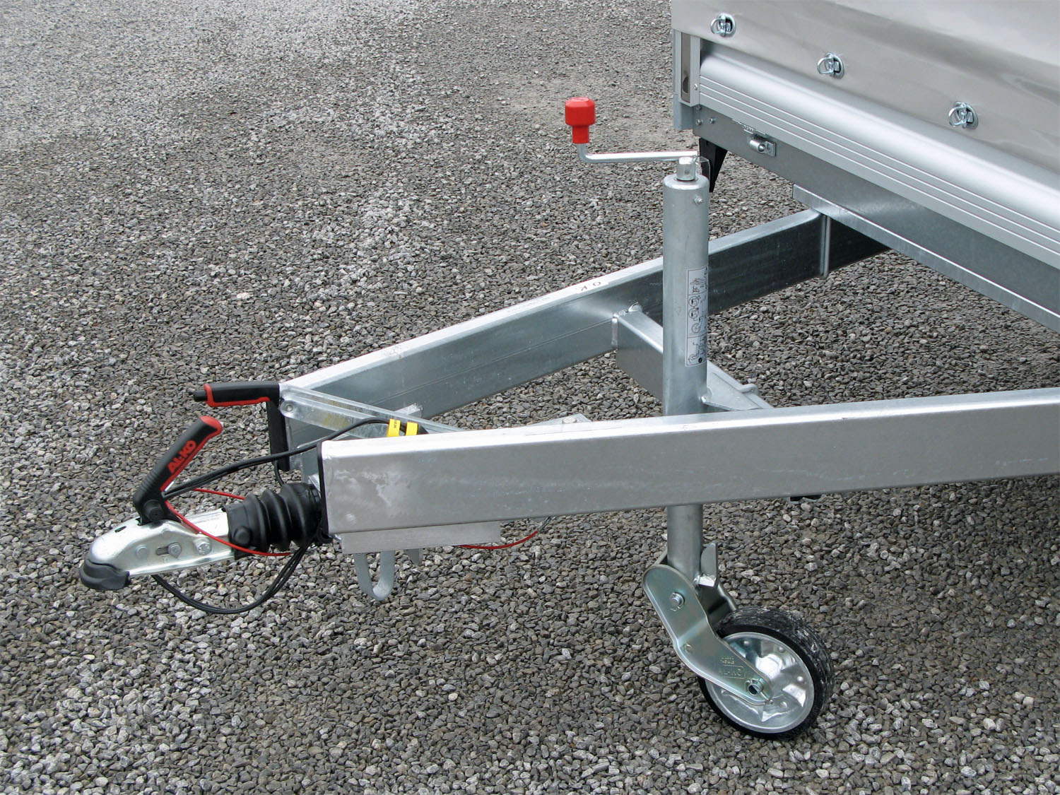 - Verstärktes, automatisches Stützrad, für sicheres Abstellen des beladenen Anhängers, Tragkraft 500kg