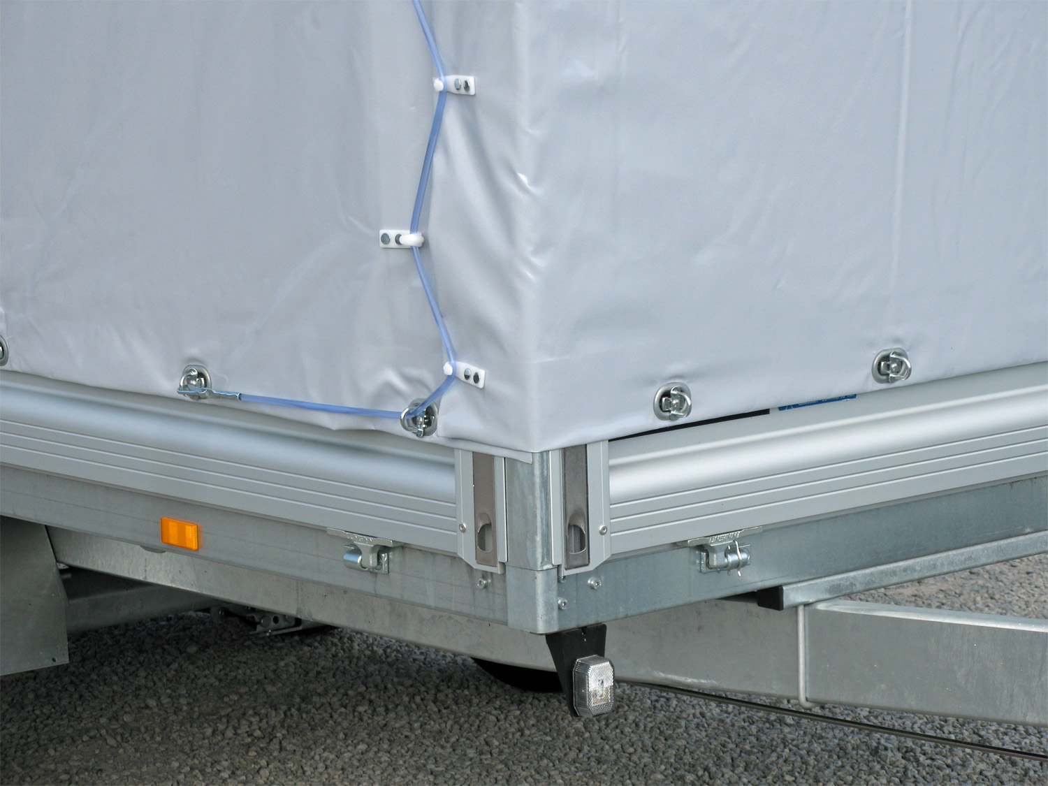 - 8 Zurrmulden klappbar, im Bodenrahmenprofil versenkt montiert