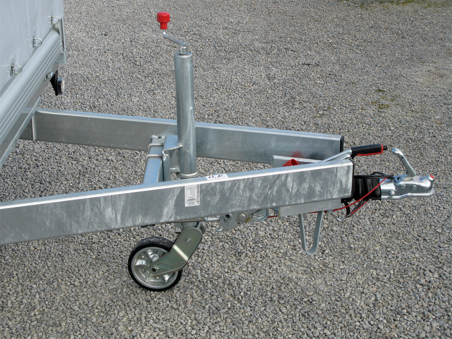 - Verstärktes, automatisches Stützrad, für sicheres Abstellen des beladenen Anhängers, Tragkraft 500kg