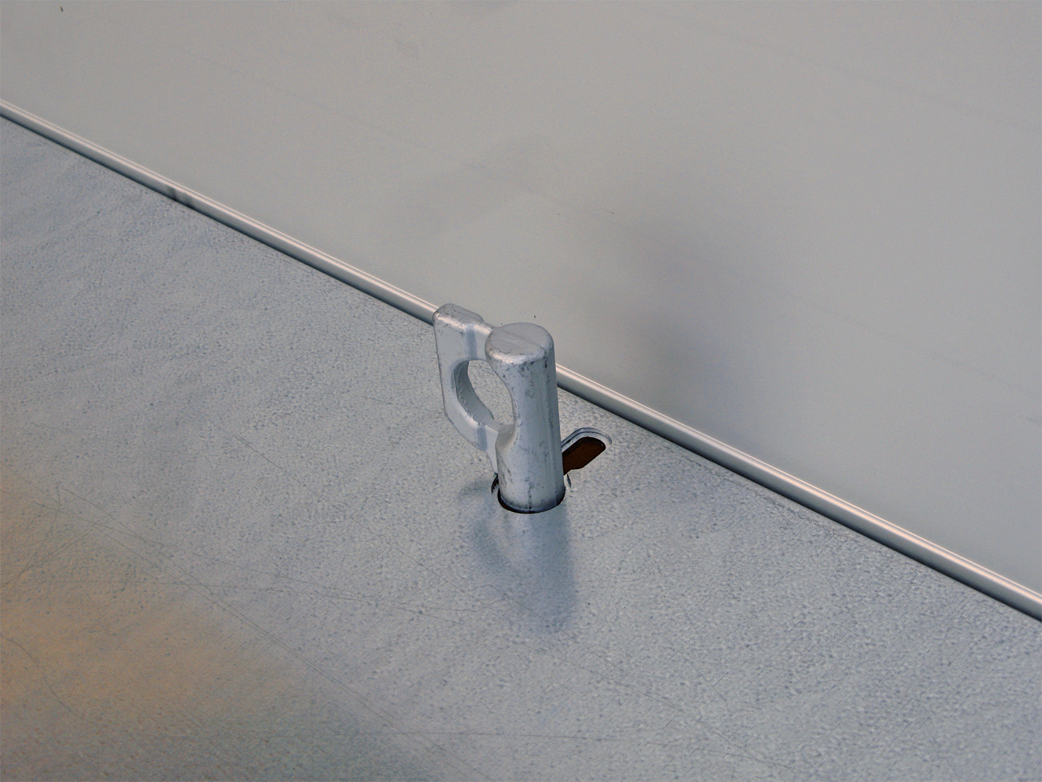 - Aluminium-Hohlprofil, eloxiert, vierseitig abklappbar, abnehmbar, mit versenkten Verschlüssen