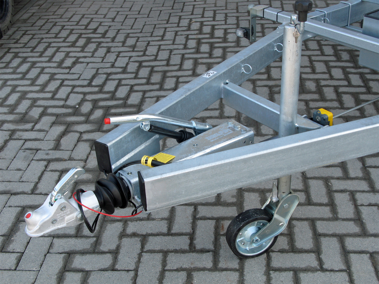 - Verstärktes, automatisches Stützrad, für sicheres Abstellen des beladenen Anhängers, Tragkraft 500kg