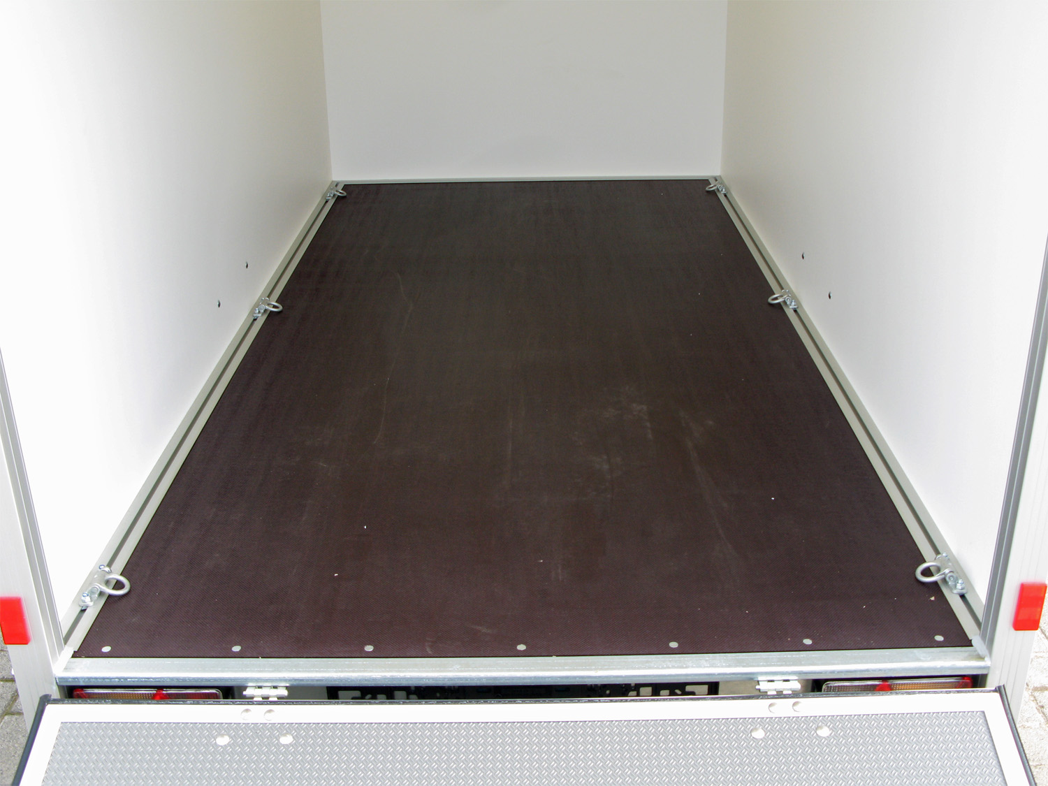 - Ladefläche aus mehrfach verleimter Siebdruckplatte 18mm, rutschhemmend und wasserfest