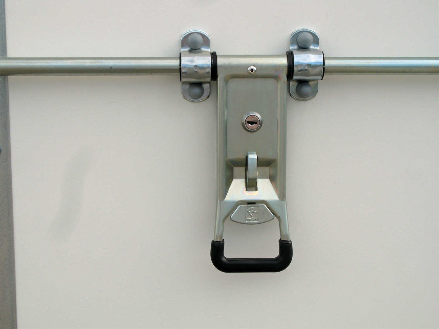 - Auffahrklappe mit rutschhemmender Oberfläche, mit querliegendem verzinktem Drehstangenverschluss, 2 stabilen Unterzügen, belastbar 300 kg