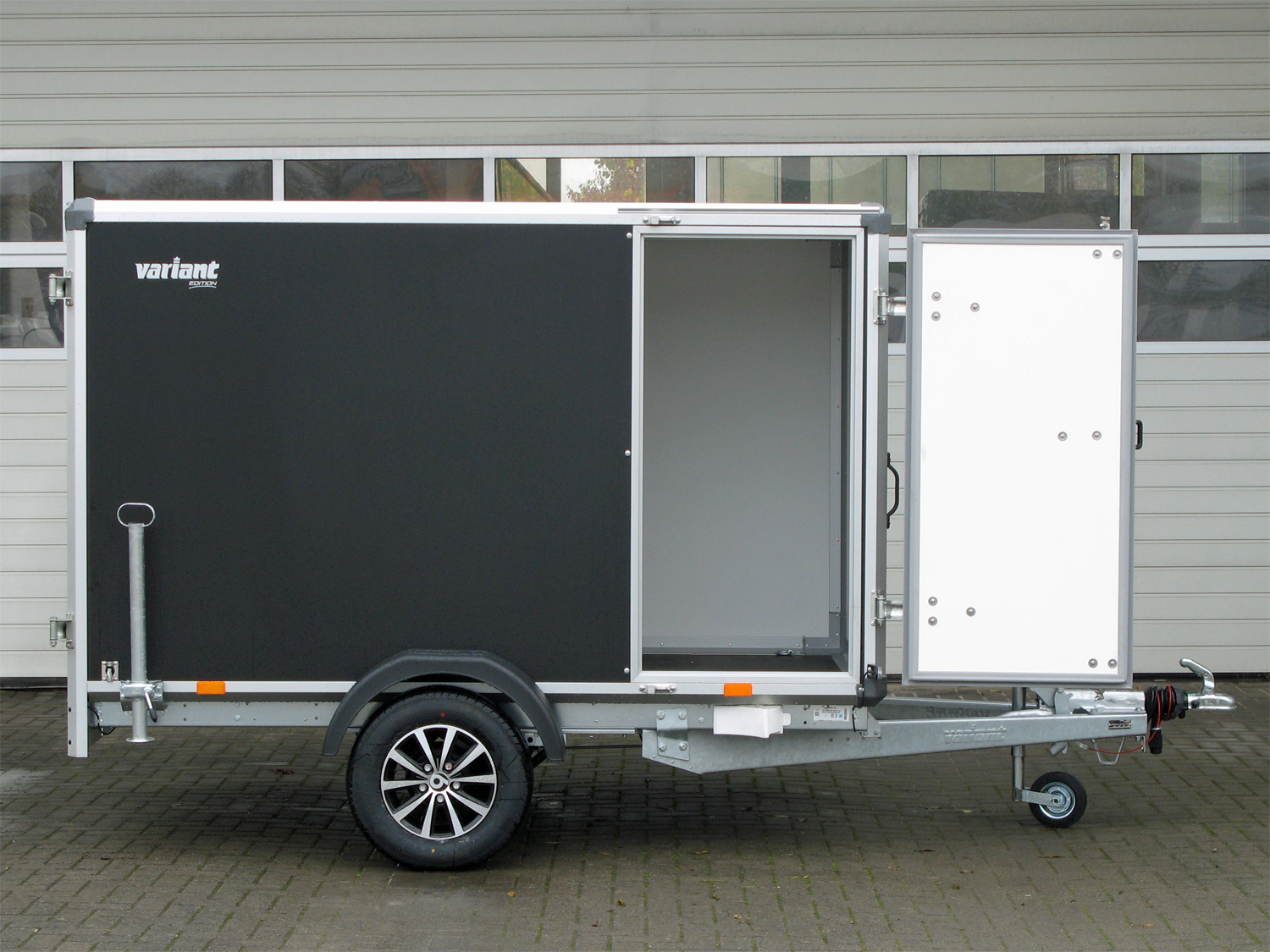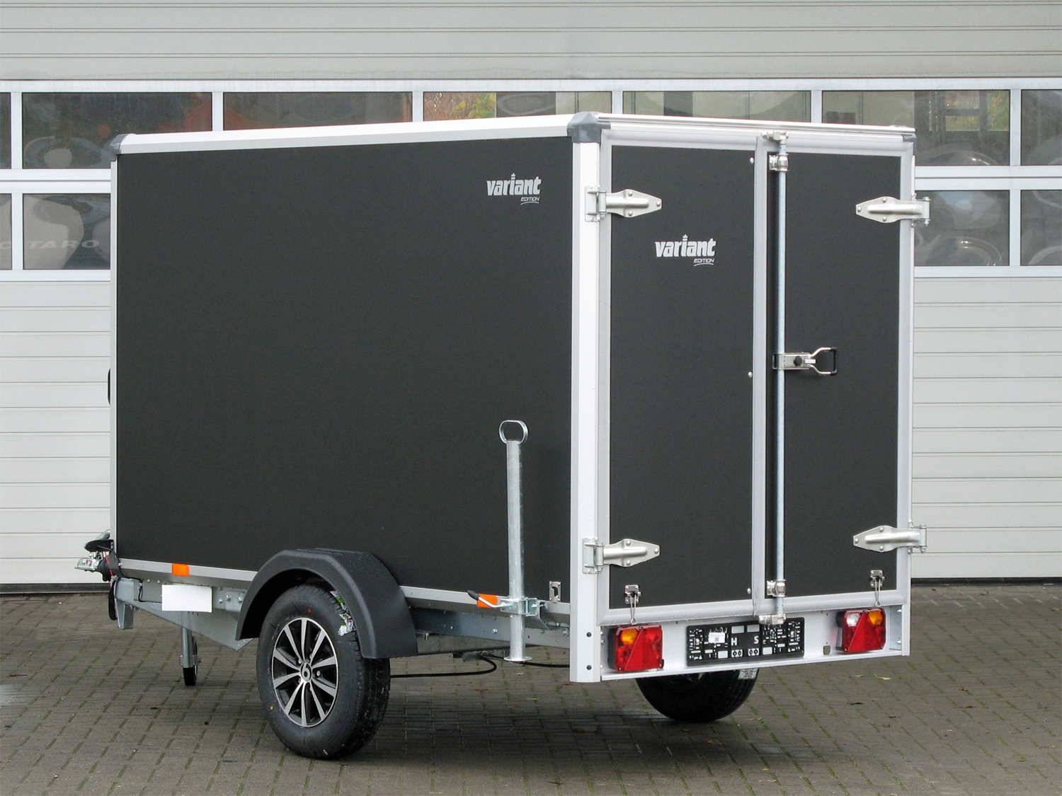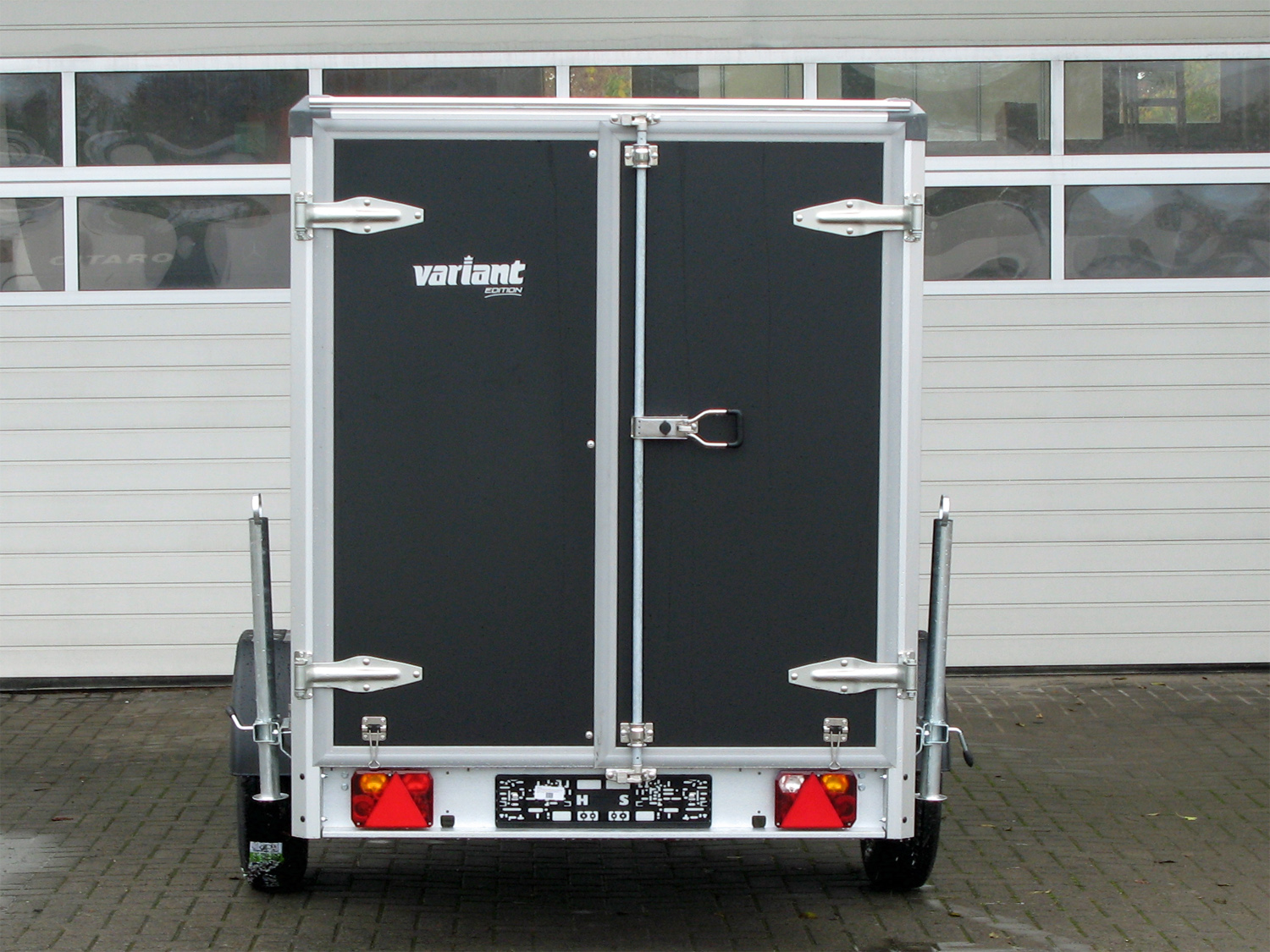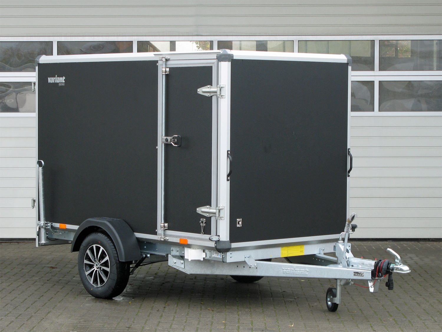 Die Variant 1315 C2 Edition ist ein stilvoller und funktionaler geschlossener Kofferanhänger der Cargo Edition-Serie, entwickelt für sowohl professionelle Anwender als auch Freizeitnutzer. Mit schwarzen Sperrholzseiten, Dach und Boden aus strapazierfähigem Sperrholz sowie Aluminiumfelgen verbindet er Ästhetik mit Langlebigkeit. Die Räder sind seitlich am Fahrgestell angebracht, was für erhöhte Stabilität während der Fahrt sorgt, und die mitgelieferten Stoßdämpfer tragen zu einem komfortablen Transporterlebnis bei schwerem oder empfindlichem Ladegut bei.