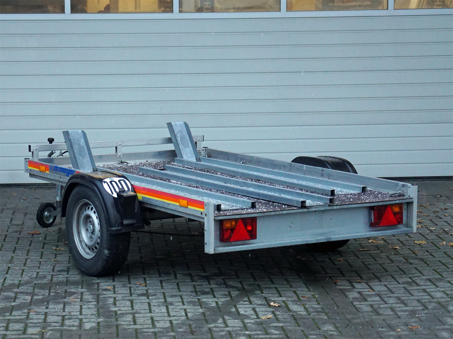 gebremster Motorradanhänger für 2 Motorräder ink. Auffahrschiene , 100km/h Ausführung , TÜV neu bis August 2026 , sehr guter Zustand nur im Sommer von Privat genutzt, Reifen neuwertig DOT 02/2020, Siebdruckboden einwandfrei , Anbinderinge seitlich und vorne